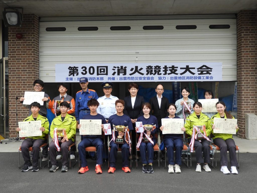 10月8日、第30回消火競技大会が出雲市消防本部で開催され、会員事業所が消火器の操作技術を競い合いました。